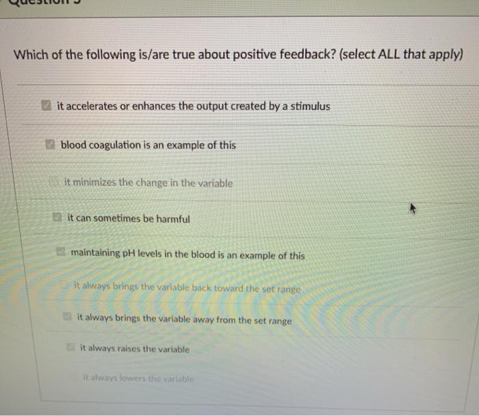 . Check all that apply. Which of the following is true of positive feedback mechanisms. Which of the following statements is true concerning feedback mechanisms.